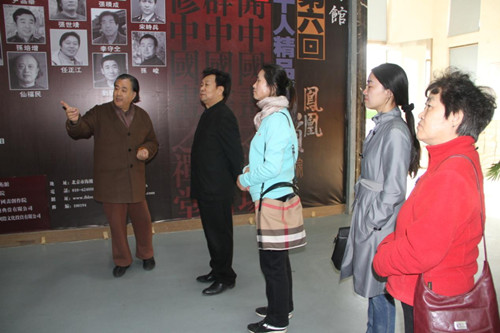 在韩国栋馆长的陪同下,谭友鹏先生一行参观了北京凤凰岭美术馆展厅,并对展厅里面陈列的名家画作给予了高度评价。
