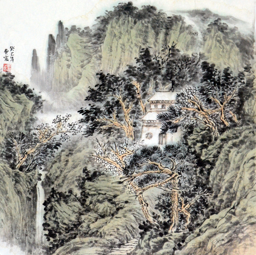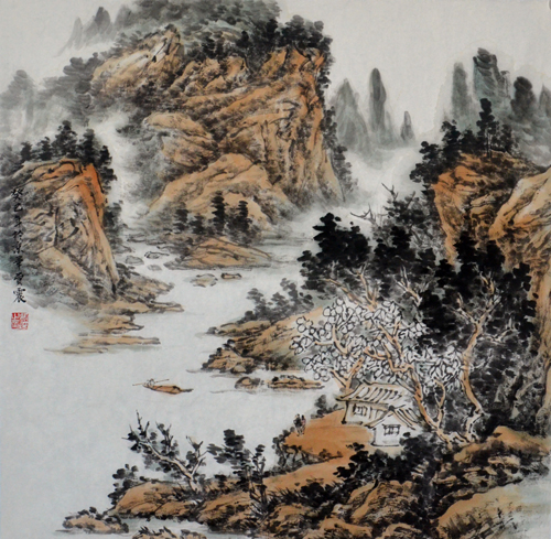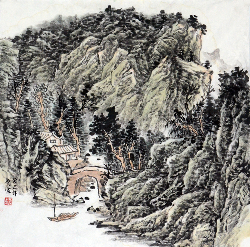 费震,1966年生于济南,1989年毕业于山东艺术学院美术系中国画专业,获学士学位。2000年结业于山东师范大学美术学院研究生课程班。作品多次获省市教育系统各种画展一等奖。2007获新华社举办的全国美展“百杰画家”称号,同年参加《全国美术教师展》获优秀奖。山东省美术家协会会员,济南市中国画研究会理事,山东民进开明画院院委。2013年就读于北京凤凰岭美术馆龙瑞工作室山水画课题班,师从龙瑞、张培武老师。