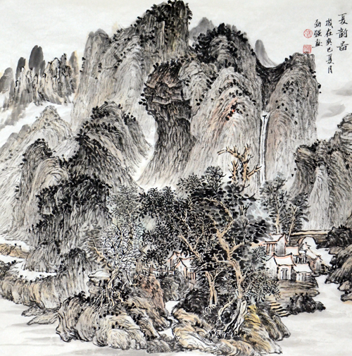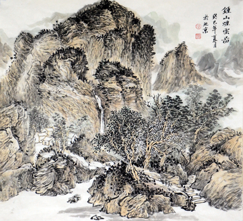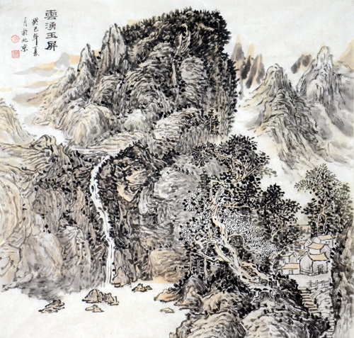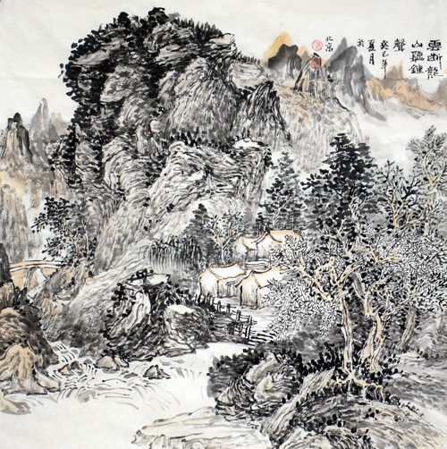 今年3月份有幸能进入北京凤凰岭美术馆龙瑞工作室山水画课题班学习,是我人生的一个重要转折点,特别是得到导师张培武馆长的悉心指导,使我收获颇丰,让我认识到中国画的学习,要从临摹入手,并且往往始终伴随着学习的全过程。它是学习山水画的一种重要手段,通过临摹,能在短期内高效率地迅速了解山水画的各种基本技法,从而达到事半功倍的效果。但由于国画技法,如山水中的皴法等,经过前人反复锤炼,已成十分完善的程式,临摹已久,很易被其完善的程式所迷惑而不能自拔。而通过写生,就能使学习者在传统技法下的程式化山水与真山实水之间架起沟通的桥梁。一方面,以所习技法表述真实山水,另一方面,用大自然中山水的万千姿态,印证传统山水程式,明了这些程式之由来。一个多月的临摹课结束了,终于迎来了盼望多时的写生课。写生地点安排在北京云蒙山, 说起"写生",从美术院校出来的学生一点也不陌生,那种支起画夹,对景描画,一坐半天一天的经历,谁都有过。但实际上,这一般是西画的写生方法。而在中国画,所谓"写生",往往是“皮袋中置描笔在内,或于好景处,见树有怪异,便摸写记之,……”(元·黄公望《写山水诀》)。中国传统的山水画写生观中,是把对自然的深入观照和细微体悟放在首位,并使自然山水与画家心灵互融神会,最终达到顾恺之所说的"与山川神遇而迹化"的目的。而面对风景秀丽的云梦美景, 前面的高山,结构相当多,相当复杂,刚开始两三天无从下手,真找不到方法。在张老师的指导下,我学会了如何取景,如何构图,如何加减生活素材,以及对虚实和黑白的处理,渐渐对写生有了一些体会。张老师邀请了中国美术学院岳黔山副教授给我们点评作业,岳教授认真对每一幅作品进行点评,指出存在问题,提出修改的意见。龙瑞老师也亲临写生基地参与写生,龙老师着重诠释了写生的重要性,在写生当中如何处理画面,如何创设意境,锤炼笔墨语言等等,让我们对写生有了进一步的认识。在此对龙瑞老师和张培武馆长表示深深的谢意!