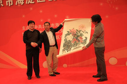 会后,各位领导与协会200余家会员企业代表举行了联谊活动,活动上北京凤凰岭美术馆董事长向海淀区创意产业协会赠送精品国画一幅,成为一大亮点。