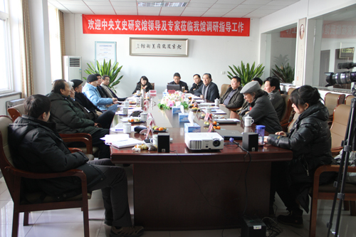 2012年2月8号上午,中央文史研究馆领导与专家学者一行到北京凤凰岭美术馆、凤凰岭书院考察调研工作。在北京凤凰岭美术馆董事长张红军、北京凤凰岭美术馆馆长、书院院长助理张培武、北京凤凰岭美术馆常务副馆长、书院教务长韩国栋陪同下参观了展览厅、临摹室、书院和艺术家工作室。随后,在会议室举行了座谈会。