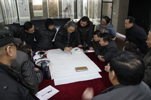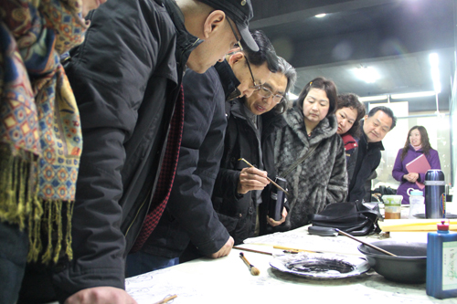 从拿笔方式,到选笔技巧,再到用笔规律,张培武详尽地讲授了临摹方法及步骤:“临画时多用中锋,体会古人用笔的规律与节奏,面对临摹的古画,要先读,再想,后临。临摹时做到先型后意,先进后出,先细后简,先繁后疏,最后求变。临画切忌机械地照画,而是要体味其中的笔法与墨法,每一点,每一线要画得有质量,用墨要灵活,注意画面的浓淡干湿。临摹是一辈子的事,临古人画,除了学习技法外,更重要的是体悟其意趣情怀和精神追求。”