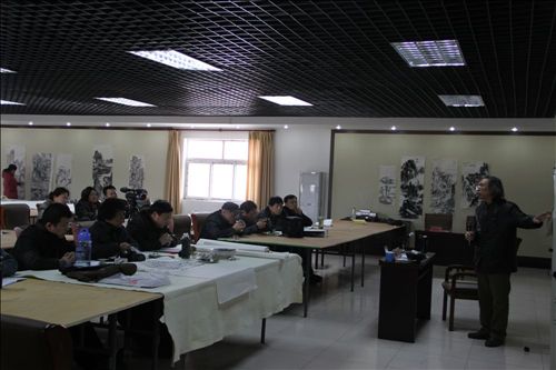 2012年3月7日上午,北京凤凰岭美术馆馆长张培武馆长为中国画创作班讲授“中国画的笔法”。