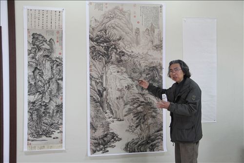 张馆长特别强调,临摹是中国画几千年传承的基本经验。当代的国画大家也特别注重临摹。临摹就是继承传统,贴近文脉,是了解中国画的法理,要贯穿于艺术探索的全过程。我们讲的临摹并非与原作雷同的复制,而是要心领神会,研习透彻原作的神髓,融入自己的艺术觉悟,在笔墨、技法、气象上达古人之意,又可融入自己的情志。