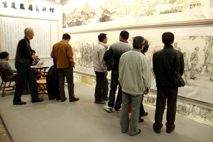 北京凤凰岭美术馆应邀参见展览(6号馆),会上展出《京沪高铁揽胜图》长卷(局部)和《西电浩歌》长卷(局部)以及部分馆藏作品。引来众多观众驻足参观。