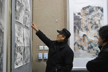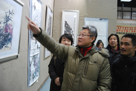 王鲁湘院长发表了热情洋溢的讲话,对书院开学以来的教学活动以及此次展出的作品给予了高度评价和肯定。张红军董事长和张培武馆长分别先后致辞,汇报和总结了书院一个学期的工作,并回顾了凤凰岭美术馆一年来的工作,展望了2011年的美好前景。各位导师就书院一个学期以来的教学活动分别进行了精彩的点评,导师们一致认为凤凰岭书院开创了中国画学教学的新模式,是中国画再教育的一个创举,通过学员的展出作品,已经看到了这种模式的优势。张立辰教授说,师傅带徒弟是中国画的传统教学方式,凤凰岭书院不但承继了这一方式,还创造性地与中国历史上的书院相结合,开创了现代形势下中国画学的全新教学模式,作为导师我深切体会到这种模式对中国画学师承的重要性与紧迫感。王鲁湘院长总结道,太极文化与中国画的结合,是中国文化精神在中国画的具体体现,如果我们的画家在作画的过程中感受和体验到太极的精神和行云流水般的动作与程式,那么也就真正懂得了中国画的精髓所在。最后,被誉为“太极皇后”的陈春爱、李满新夫妇分别表演了一套精彩的太极拳法,博得了与会者的阵阵掌声。