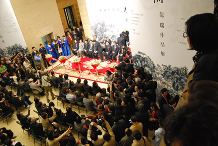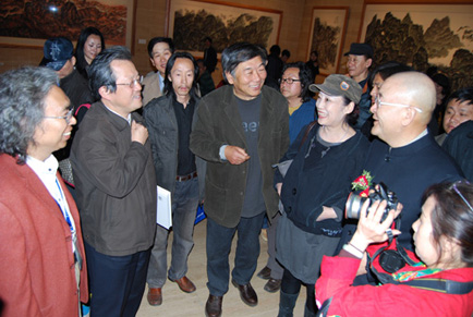 北京凤凰岭美术馆董事长张红军,馆长张培武,常务副馆长韩国栋以及凤凰岭书院的学员们参观了“山水家园——龙瑞作品展”,对龙先生的展览表示祝贺。龙先生用自己的作品来阐释了他的“正本清源,贴近文脉”的学术主张,大家看了“山水家园——龙瑞作品展”,被龙先生的鸿篇巨制所震撼,也深受启发与鼓舞。