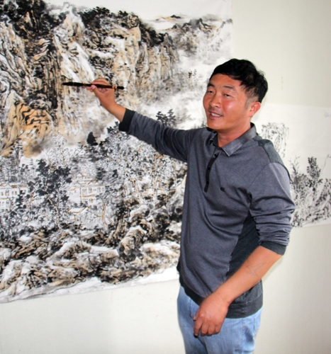 王益民,1967年出生于黑龙江林口县。黑龙江省美术家协会会员,黑龙江书协会员,牡丹江市工美协会副主席,林口县美协副主席。2013年就读于北京凤凰岭美术馆龙瑞工作室山水画课题班,师从龙瑞、张培武老师。