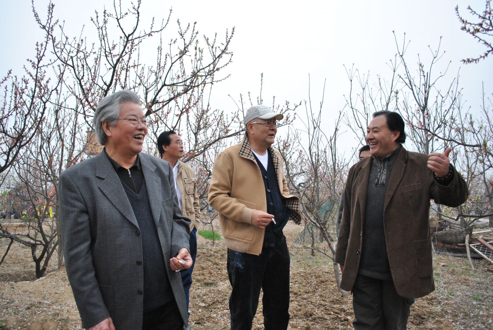 龙瑞先生等人在桃花林间笑谈