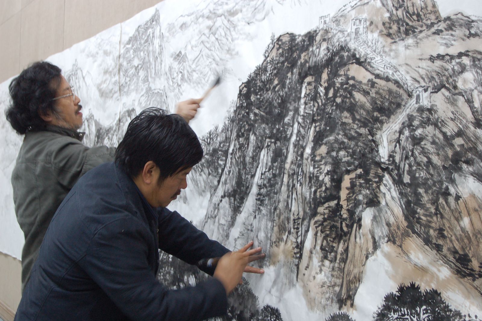王金石在展厅内与大家一起讨论京沪高铁长卷